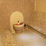 Buhar Odasında jeneratör odanın dışındadır, Sıcaklık en fazla 45 °C civarındadır, Nem oranı %100’e yakındır, Duvar/tavan seramikleri kullanılabilir, Eğimli tavan önemle tavsiye edilir, Zeminde kanal olması gerekir, Tüm iç yüzeylere sızdırmazlık kaplaması yapılmalıdır. Saunada ise, Sauna ısıtıcısı odanın içindedir, Sıcaklık en fazla 90 °C civarındadır, Nem oranı %25’e varır, Duvarda ve tavanda seramik malzemeler bulunmaz, Tavan düzdür, Zemin kanalı gerekmez, Su geçirmezlik özelliği gerekli değildir.